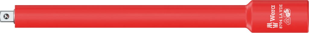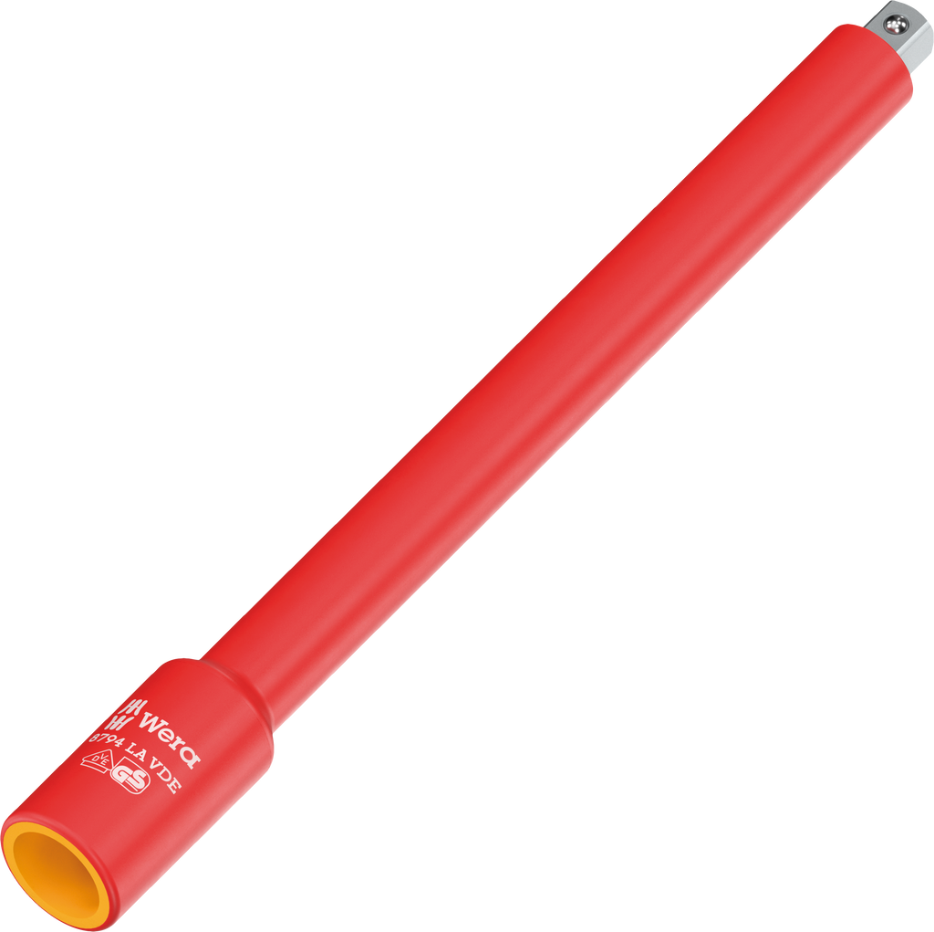 1/4" VDE extension with increased safety thanks to the yellow insulation core, which becomes visible if the outer red VDE insulation layer is damaged. Individually tested tool as per IEC 60900 at 10,000 V for safe working at the approved voltage of 1,000 V.